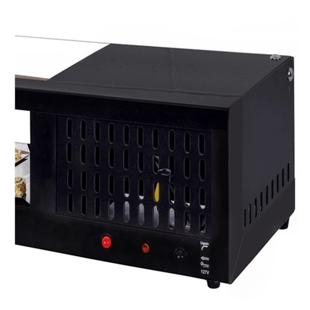 As vitrines refrigeradas para doces são produzidas em perfis de alumínio anodizado, com vidros retos temperados, revestimento interno aço inox, com tubulação/serpentinas superiores, pés reguláveis, iluminação LED, compressor compacto.