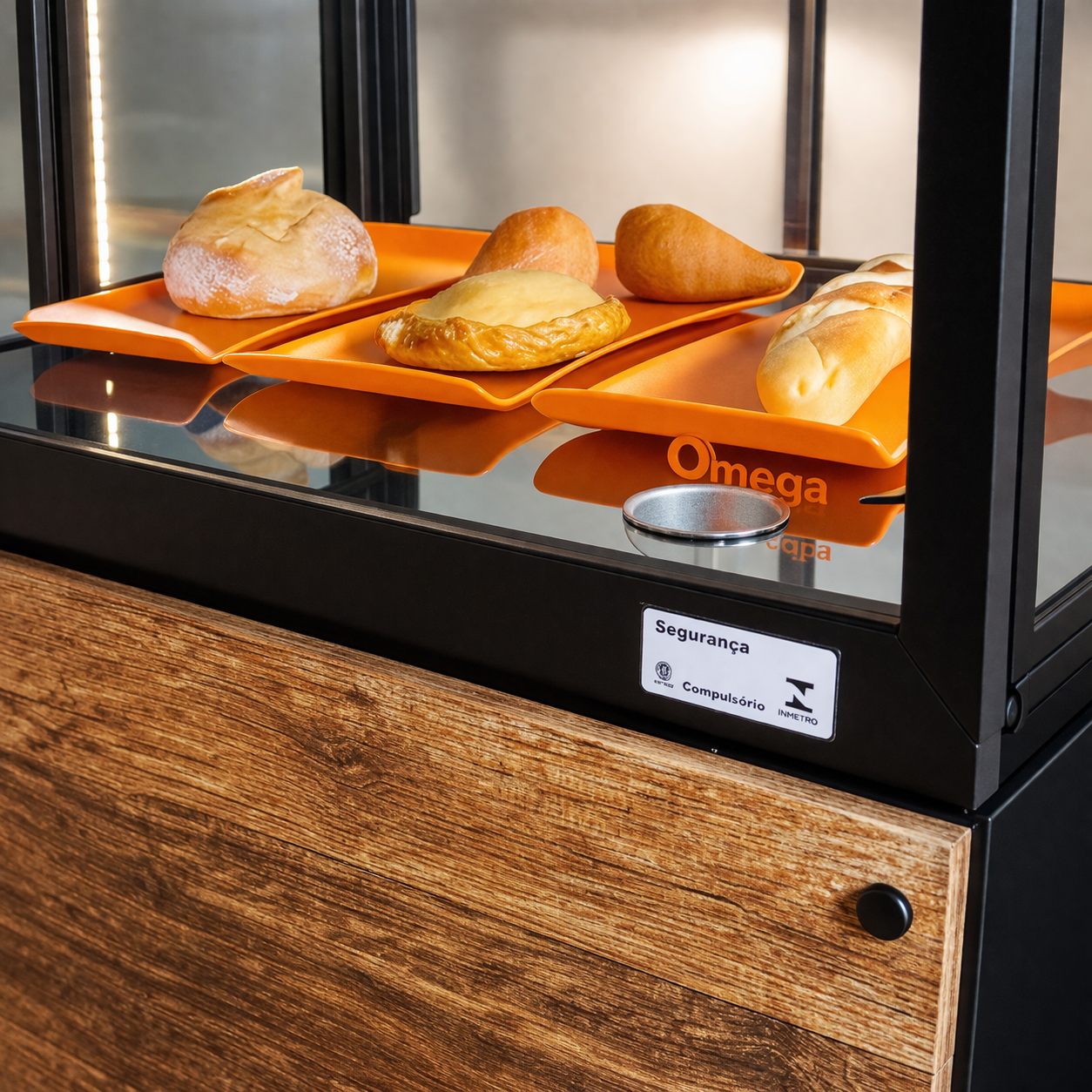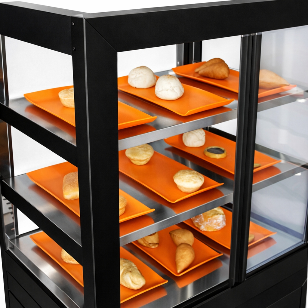 Além de ser um produto patenteado e exclusivo, o Balcão possui um design sofisticado e inovador, num estilo mais Retilíneo. O seu excelente acabamento faz com que os alimentos ganhem mais visibilidade do consumidor.