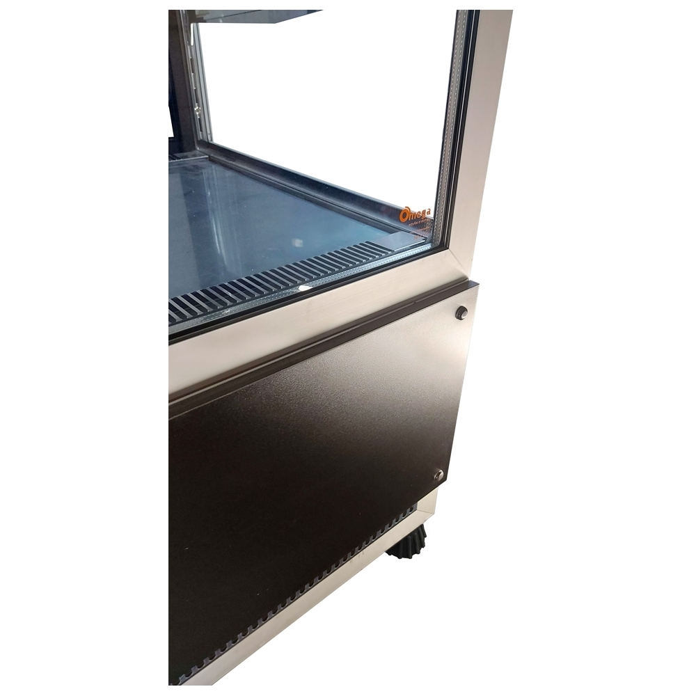 Lembrando que o Balcão possui vidro duplo ( com gás argônio anti-embaçante ) frontal e superior, prateleiras de vidro temperados, o sistema de refrigeração é Ar Forçado, possui controlador de temperatura juntamente com um termômetro digital (pré-programado de fábrica), degelo automático (frost free) e o produto é certificado pelo INMETRO.