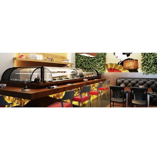 As vitrines refrigeradas para doces são produzidas em perfis de alumínio anodizado, com vidros curvos temperados, revestimento interno aço inox , com tubulação/serpentinas inferiores , pés reguláveis , iluminação LED , compressor compacto.